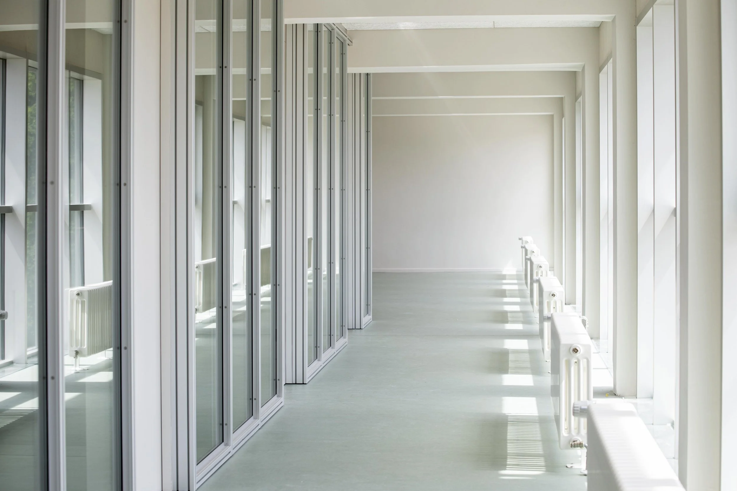 De lage energieprestaties van de bestaande gevelschil wordt aangepakt. Het dak wordt geïsoleerd, het buitenschrijnwerk wordt vervangen en gevelzonnewering wordt geïntegreerd.